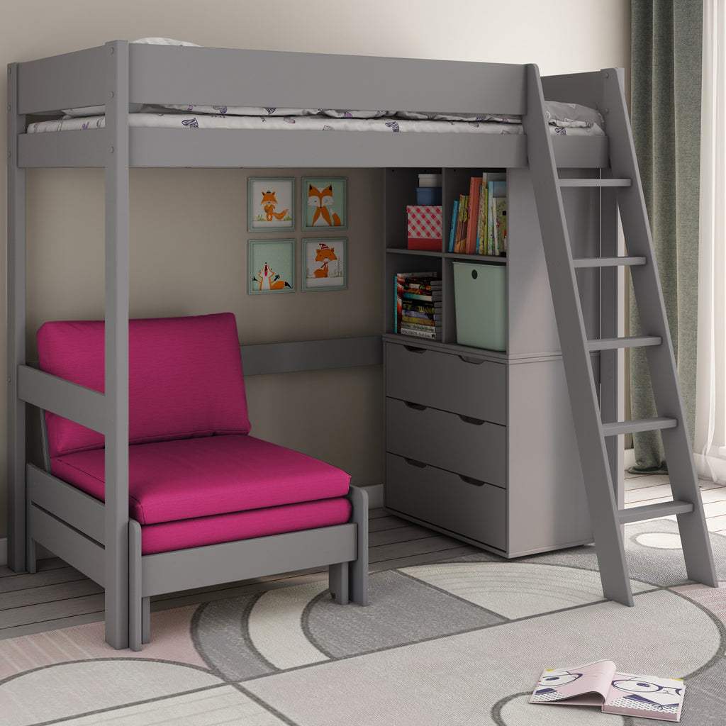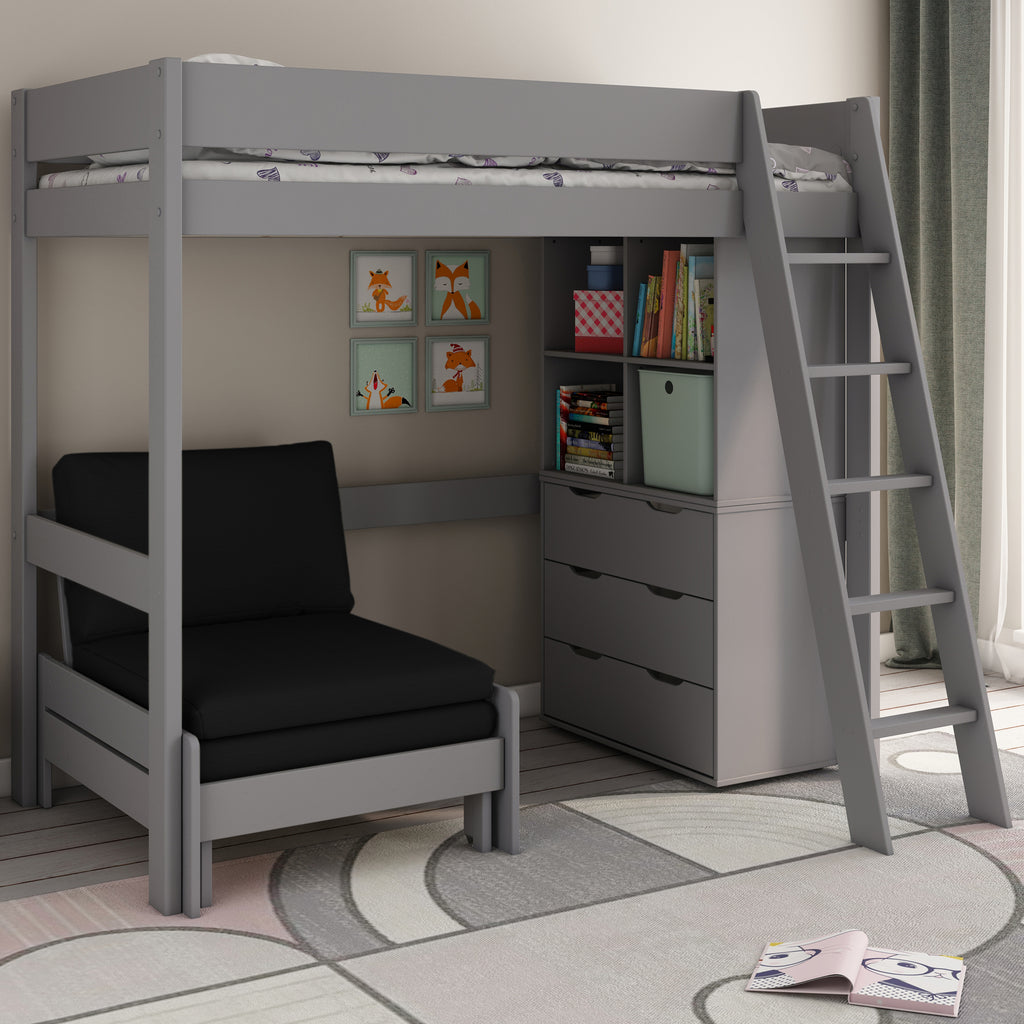 Grey Highsleeper Bed with Storage & Sofabed in Grey, Black or Pink - Kids Avenue Estella Grey 2