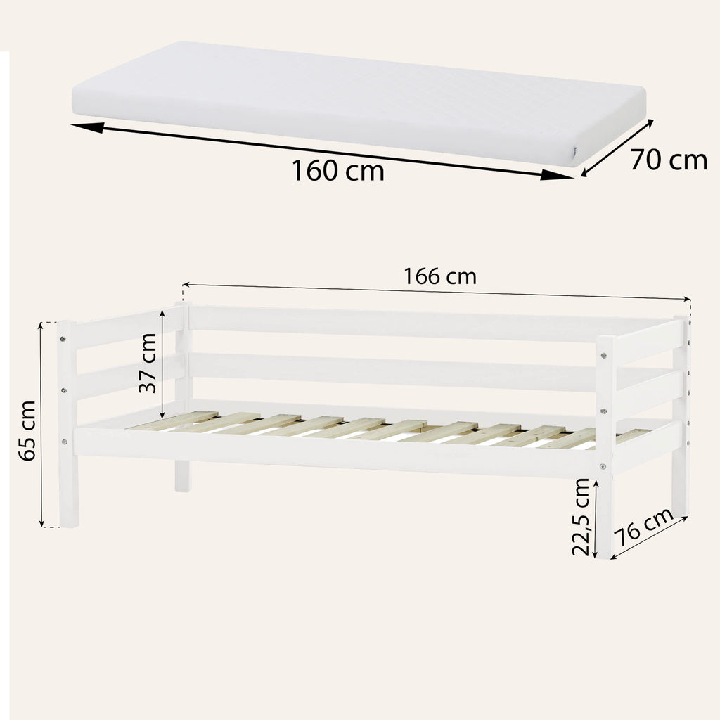Hoppekids produce beds with an emphasis on safety and sustainability. This ECO Comfort daybed is made from high quality pine, free from any harmful products and chemicals making it a good choice for younger children. The "shorty" junior size offers an ideal way of transitioning young children from a cot into a regular sized bed.