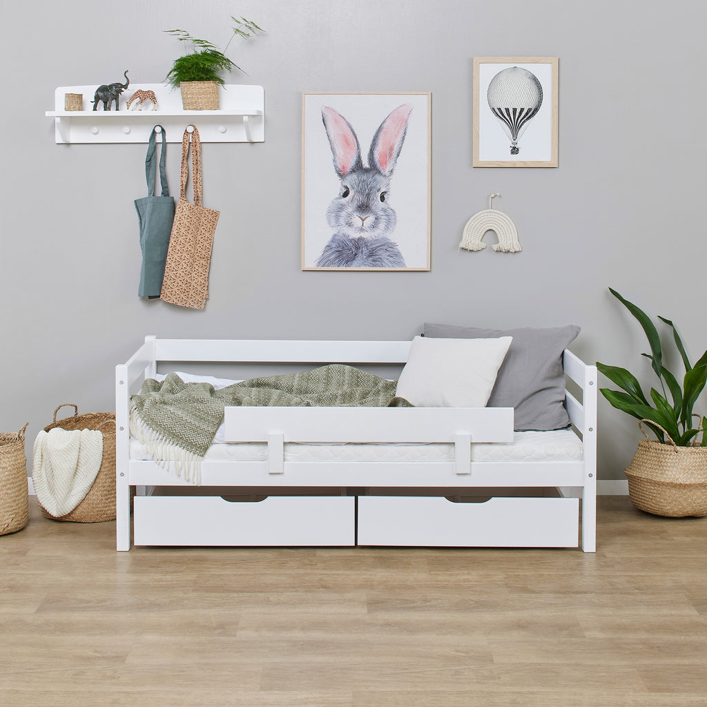 Junior Shorty Wooden Pine Bed with Storage Drawers in White from Hoppekids