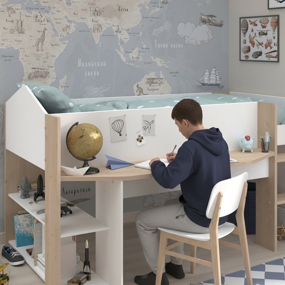 White & Oak Midsleeper Cabin Bed with Desk & Storage, Shelter by Parisot