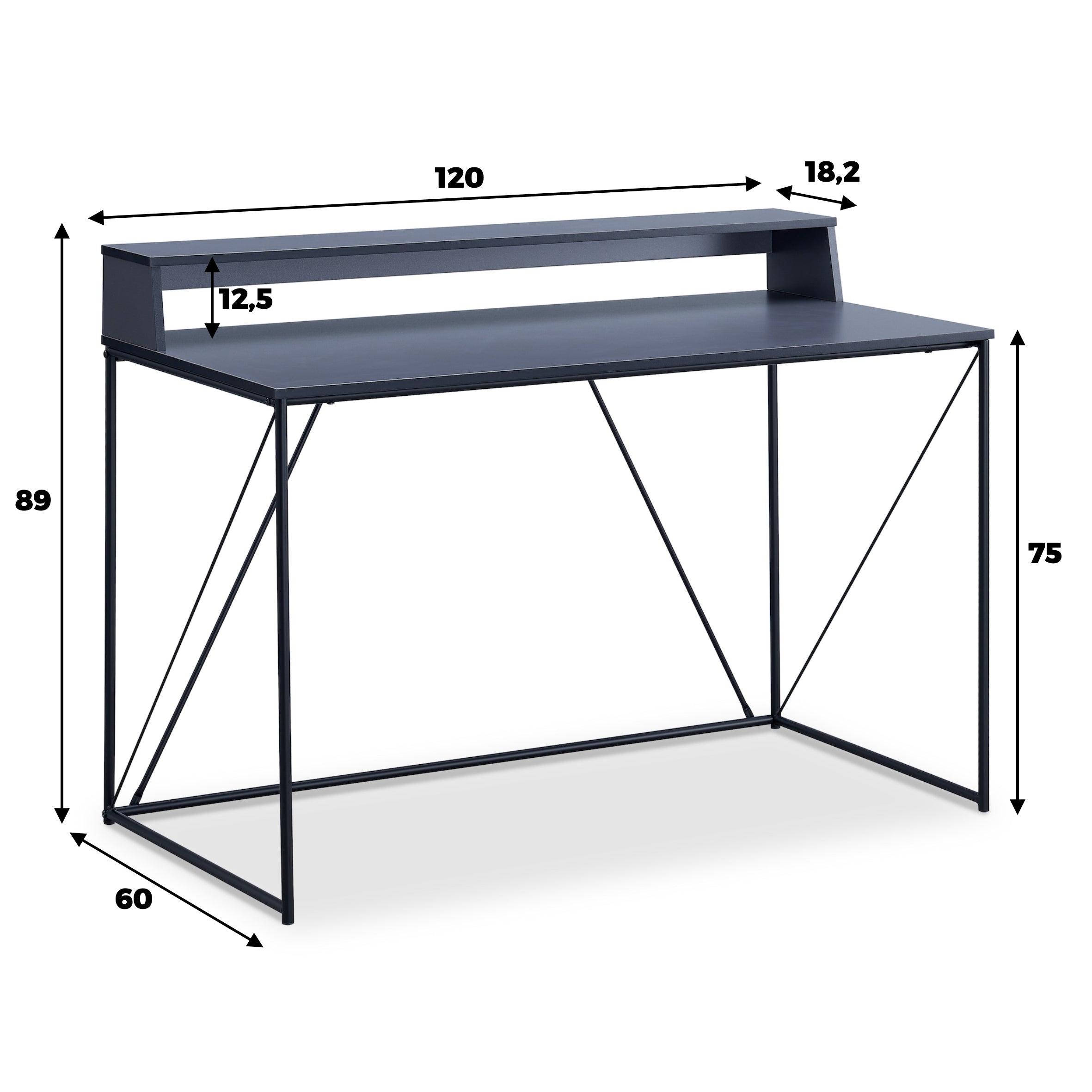 • Desktop = 120 cm long x 42 cm deep