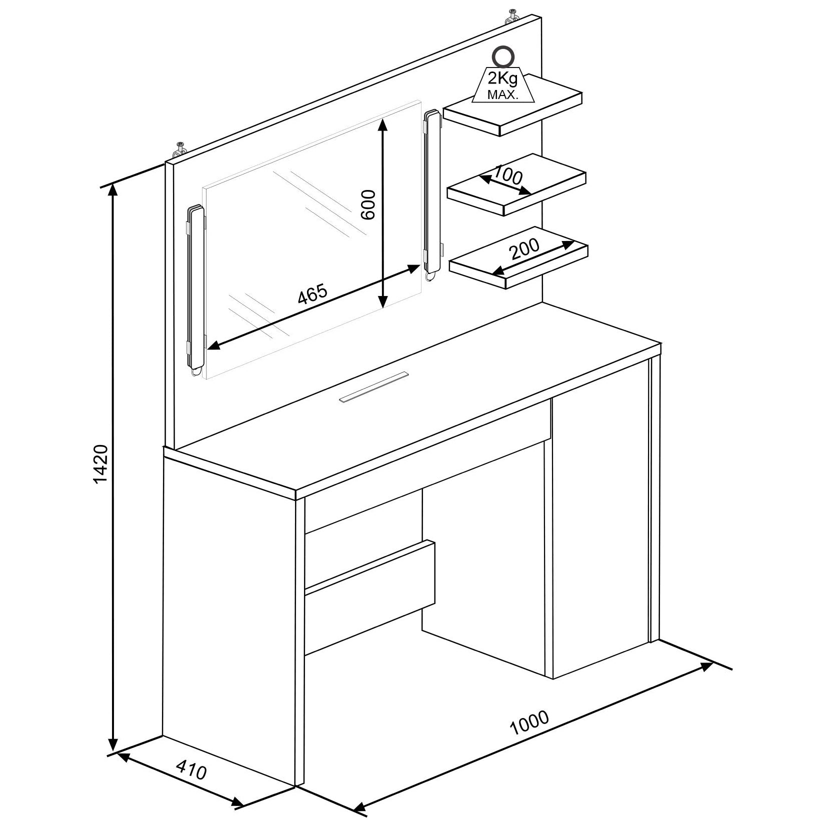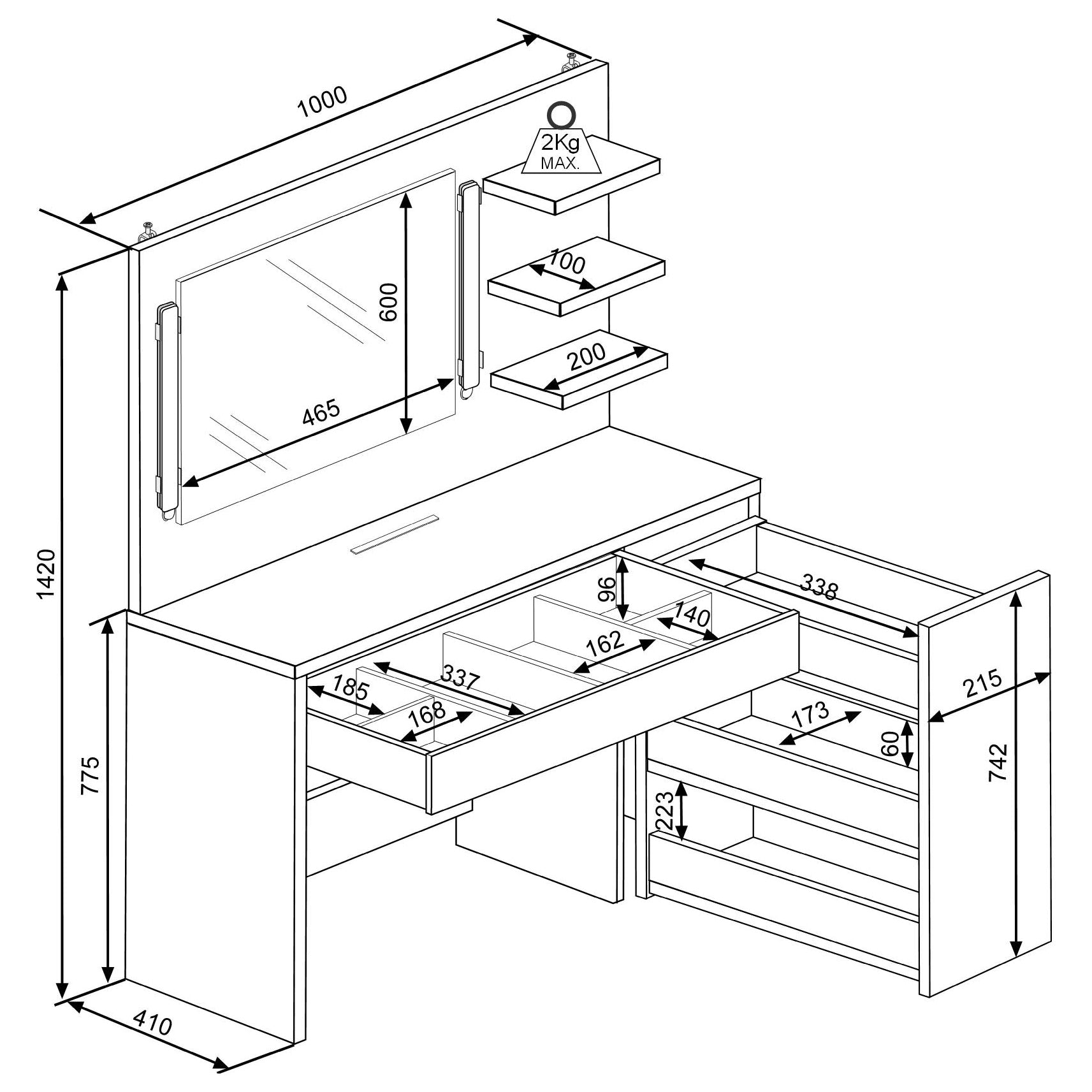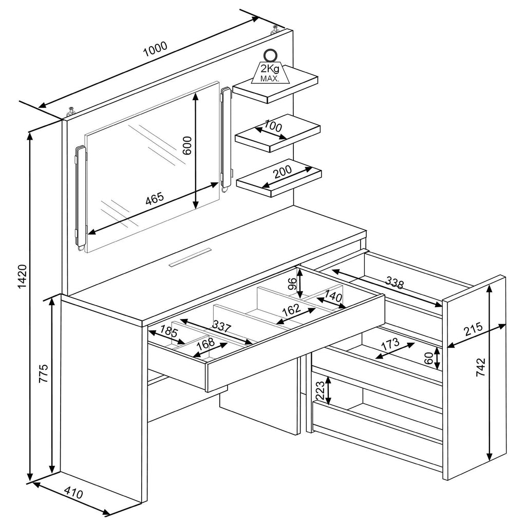 Trasman Star Dressing Table Dimensions